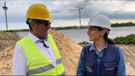 “Eu fico emocionada, pois nem nos meus melhores sonhos eu imaginei um dia trabalhar em uma empresa de tamanha grandeza e importância para nós murtinhenses. Meu sentimento é de gratidão a Deus por representar a minha Cidade nesta obra gigantesca. Meu sentimento é também de gratidão ao prefeito Nelson Cintra por apoiar e incentivar o desenvolvimento de Porto Murtinho’ disse emocionada a jovem enfermeira murtinhense, Francielly Ovelar, 24 anos, durante entrevista concedida no canteiro de obras relativas à construção da ponte que está sendo construída sobre o rio Paraguai no município de Porto Murtinho, que irá interligar Brasil (BR) e Paraguai (PY) e possibilitar a concretização da tão sonhada Rota Bioceânica.
