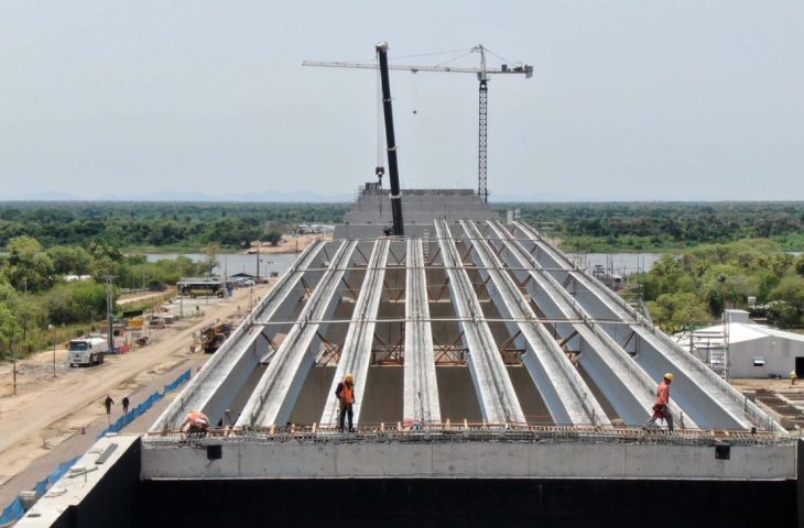 A Ponte Bioceânica mantém a celeridade nas obras com cerca de 40% da estrutura concluída de forma global. Na semana passada foi a vez do Chaco paraguaio viver um momento histórico, com o início da montagem do primeiro conjunto de 8 vigas que compõem a superestrutura do viaduto de acesso à futura ponte Bioceânica, no departamento do Alto Paraguai.