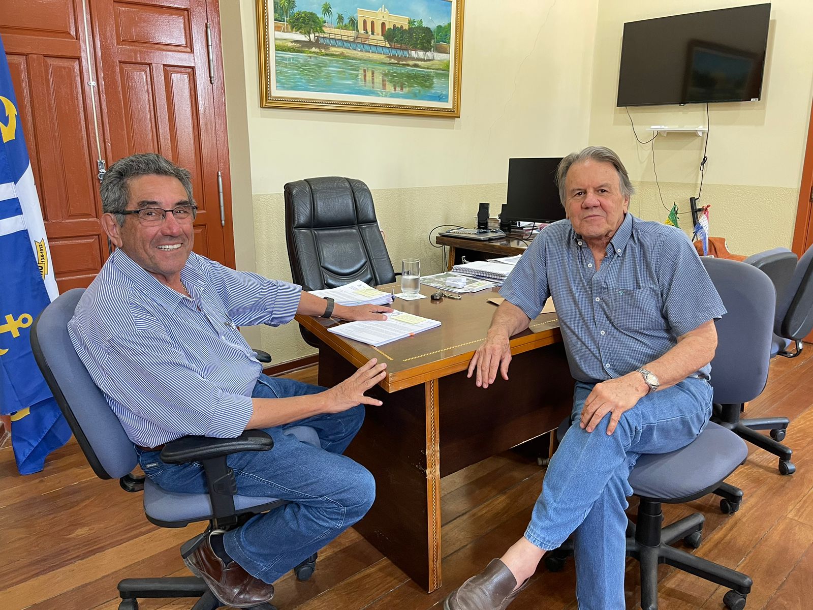 No período da tarde, Nelson Cintra, além despachar com sua equipe de gabinete, secretárias e gerências municipais, recebe visitas, a exemplo do produtor rural, Fernando Reis, sócio-administrador da Grupo União Agropastoril.
