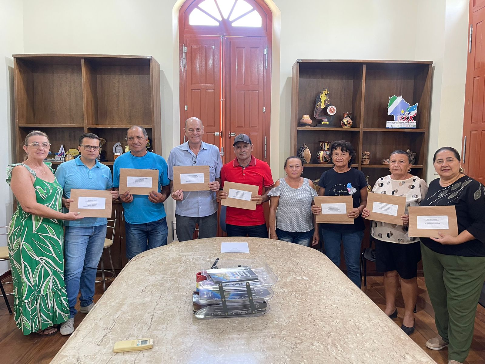 Hoje, (15), o prefeito Nelson Cintra, representado pela secretária de Educação, Rita de Cássia Padilha, com a presença dos vereadores, Elbio dos Santos Balta, atual presidente da Câmara de Vereadores de Porto Murtinho, a vereadora Sônia Maria Ferreira, do secretário de Administração, Jeferson Regi Ferreira, técnico e responsável pela Agraer, José Miranda da Fonseca , se reuniram com os pequenos produtores rurais que participam da chamada pública do Programa Nacional de Alimentação Escolar (PNAE).