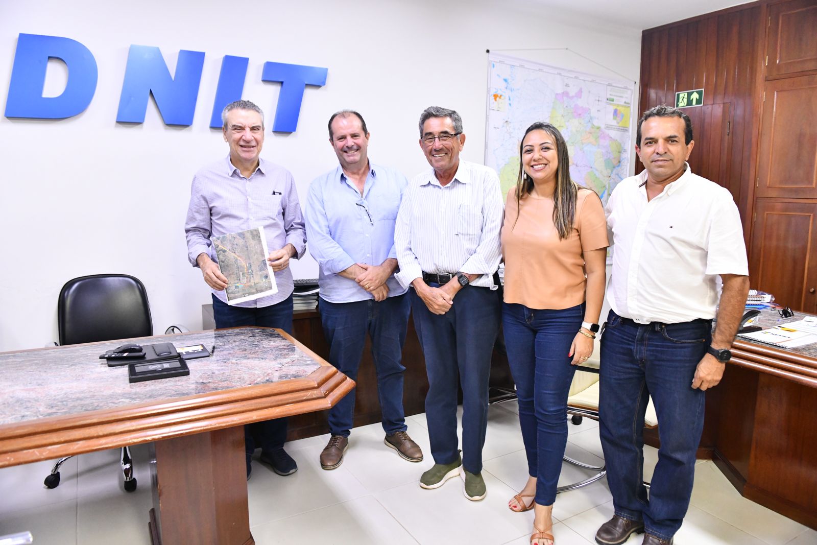 Dando continuidade nesta terça-feira (12/03) reuniu-se com o Superintendente Regional do Departamento Nacional de Infraestrutura de Transportes (DNIT) – Euro Nunes Varanis Júnior, juntamente com o Deputado Estadual Paulo Corrêa, a Gerente de Projetos arquiteta Fernanda Gonzaga e o Secretário de Obras, Habitação e Serviços Públicos Alexandre Viana em reunião tendo como pauta o acesso à Rota Biocêanica, ao qual o percurso passa pelo Bairro Salim Cafure que está diretamente conectado ao acesso para a porte, além do contorno rodoviário de Porto Murtinho na BR-267 e do centro aduaneiro de controle de fronteira.