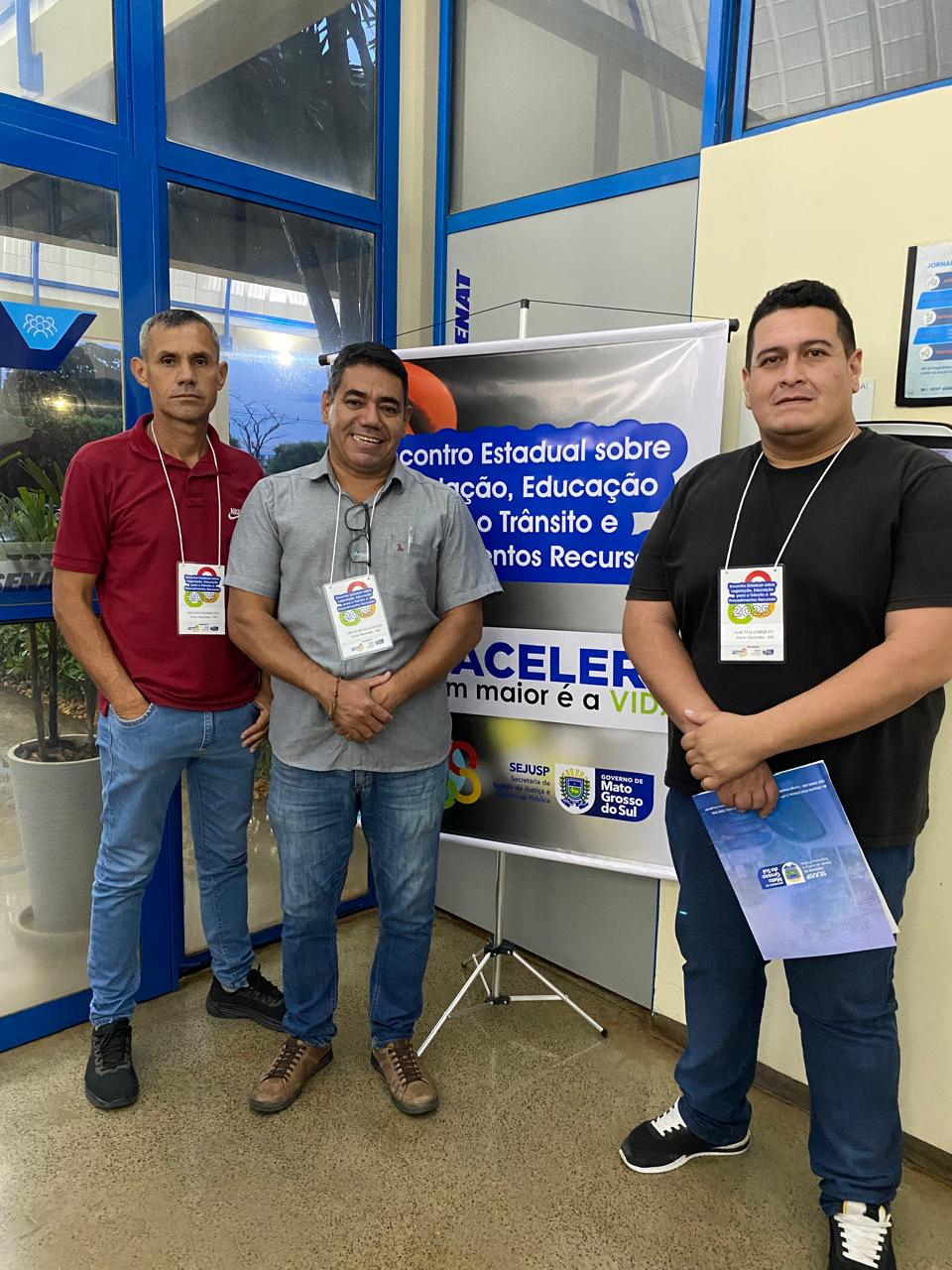 Representando o município no evento estão Jair Virgílio Mallorquin Rodrigues (Coordenador de Educação de Trânsito Municipal), Osvaldo Anastácio Filho (Gerente de Trânsito) e Arlindo Raul Rodrigues (Guarda de Trânsito), que integram a equipe responsável pela gestão do trânsito local.