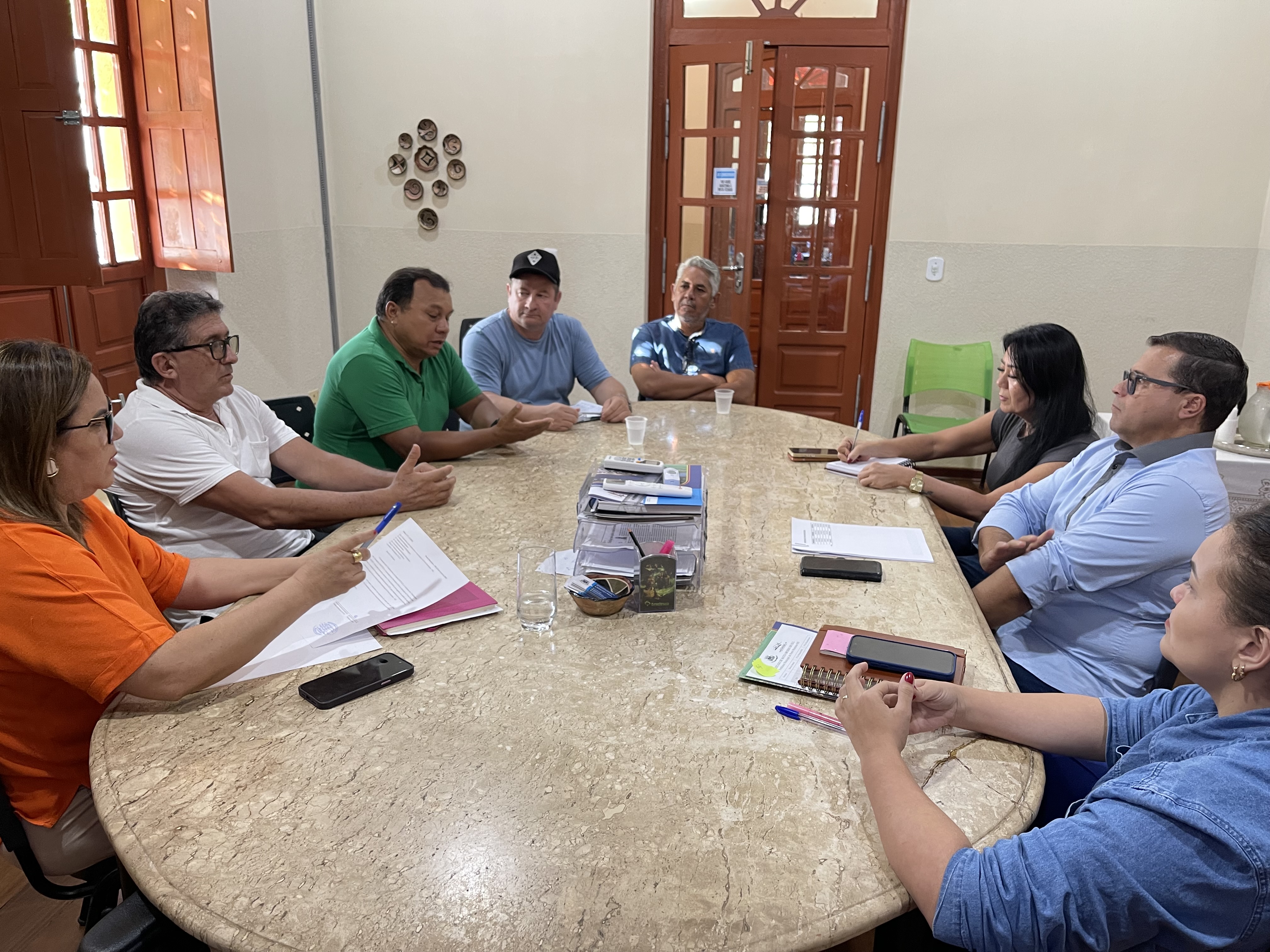 Estiveram presentes na reunião o presidente do SINTISAU, Roberto Rodrigues; o presidente do SIMTED, Odenir Amarilha; e o presidente da Associação dos Servidores Públicos Municipais (ASPM), Boaventura Britos.