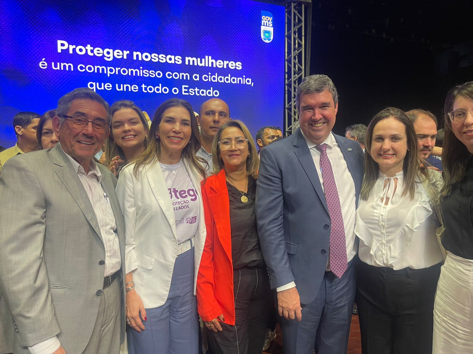 O evento contou com a participação do governador Eduardo Riedel, da vice-prefeita de Campo Grande Camilla Nascimento, da prefeita de Mundo Novo Rosária de Fátima Ivantes Lucca Andrade e do prefeito de Nioaque André Bueno Guimarães, que subiram ao palco para destacar a importância da união entre Estado e municípios no combate à violência contra a mulher.