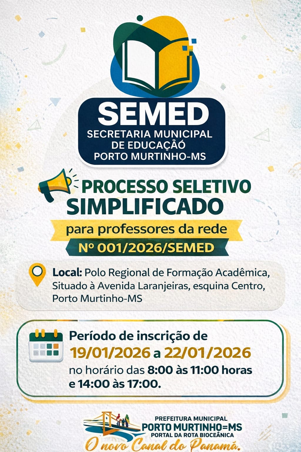 A gestão municipal, por meio da Secretaria Municipal de Educação (SEMED), publicou o edital do Processo Seletivo Simplificado nº 001/2026/SEMED, destinado à contratação de professores para atuação na rede municipal de ensino.